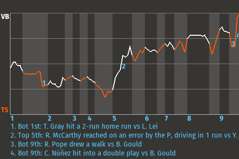 2 (3, 1st Inning off S. Jones, 3 on, 1 out; 6th Inning off K. Lewis, 3 on, 2 outs)