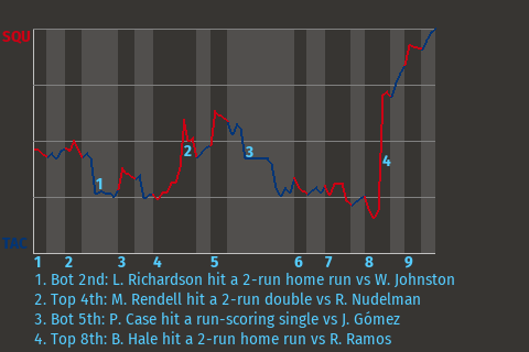 2 (9, 1st Inning off D. Swift, 0 on, 2 outs; 5th Inning off C. Cooper, 0 on, 2 outs)