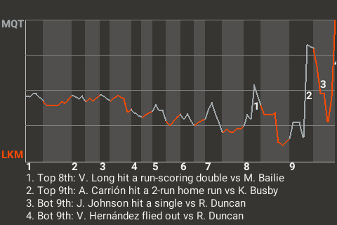 (9, 5th Inning off M. McLean, 1 on, 0 outs)