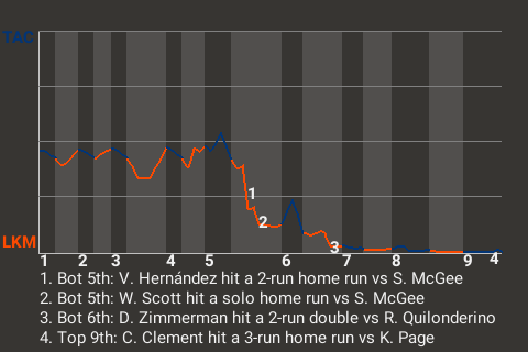 b - C. Alvarado pinch ran for M. Nance in the 8th