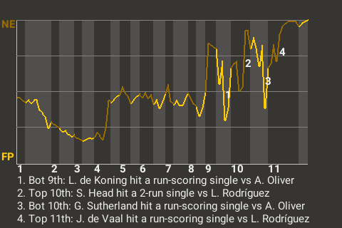 2 (11, 1st Inning off P. Bowman, 0 on, 2 outs; 7th Inning off T. Edwards, 0 on, 0 outs)