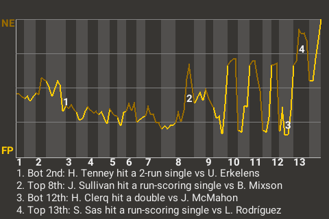 a - A. Brown pinch hit for M. Frayo in the 8th