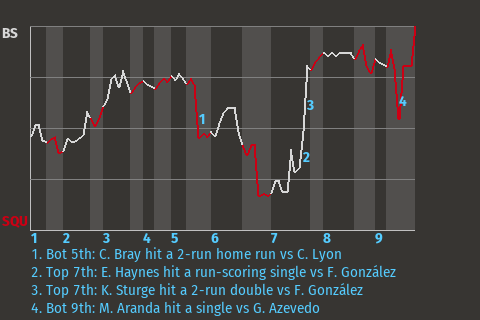 2 (11, 4th Inning off J. Dodson, 0 on, 0 outs; 9th Inning off J. Sandoval, 0 on, 2 outs)