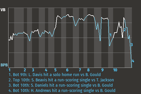 The Blues got a big at-bat from center fielder Teuvo Vihermaa. For the game, Vihermaa was 1-2 with a double, while adding 3 RBI. In the bottom of the fourth, with runners on 1st and 2nd, he stroked a 2-run double. His 6th double of the season gave Barton Springs a 3-2 lead.