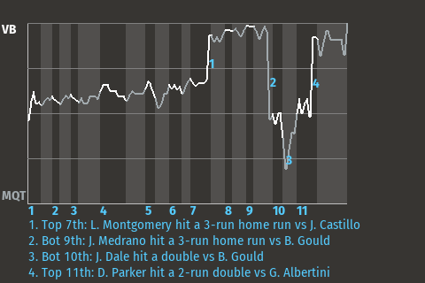 2 (4, 3rd Inning off P. Bowman, 1 on, 0 outs; 9th Inning off J. Beltrán, 0 on, 1 out)