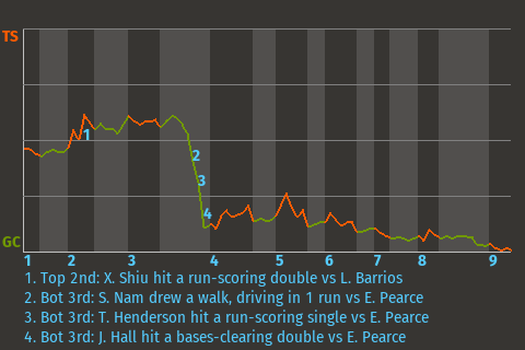 Dennis Walker chipped in a 2-run home run for Olympia in the bottom of the first. For the game, the third baseman had 2 hits in 4 at-bats with 1 home run, 1 single, 1 run scored, and 3 RBI.
