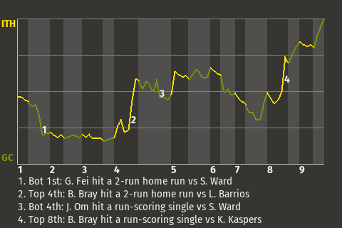 (1, 8th Inning off H. Roberts, 2 on, 2 outs)