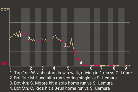 With Nuevo Mexico leading 2-0 in the bottom of the fifth, Boone batted against Gulf Coast pitcher Gordon Taylor. Boone hit a fastball to right-center for a grand slam home run. His 3rd home run of the season put the Mariachis on top, 6-0.