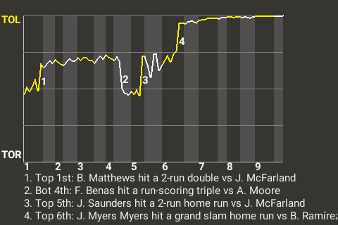 Toledo used the timely hitting of John Myers Myers to capture the win. The shortstop socked a grand slam home run in the top of the sixth inning to put the Stingers ahead, 8-3. It was his only hit in 5 at-bats, but it was a big one.