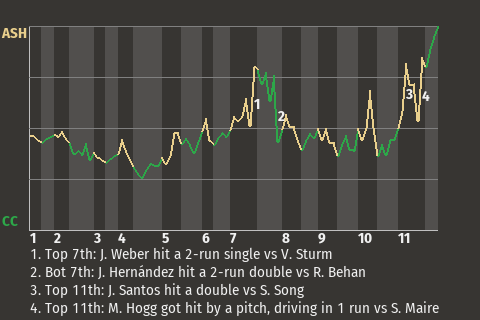b - T. Yi pinch hit for R. Stevens in the 9th