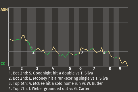 b - A. Brown pinch hit for R. Stevens in the 11th