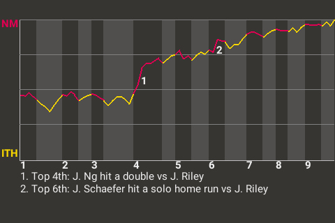 2 (9, 6th Inning off S. Frey, 2 on, 1 out; 8th Inning off R. Mitchell, 1 on, 2 outs)