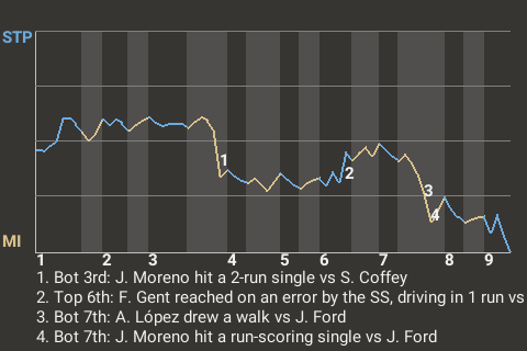2 (5, 7th Inning off B. Taylor, 0 on, 2 outs; 9th Inning off P. Hernández, 0 on, 0 outs)