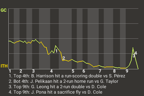 (4, 9th Inning off D. Cole, 3 on, 0 outs)