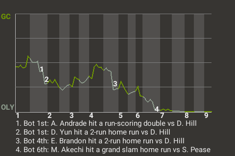 2 (5, 4th Inning off D. Hill, 1 on, 1 out; 8th Inning off D. Torres, 0 on, 0 outs)