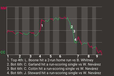 (6, 6th Inning off W. Nevárez, 0 on, 1 out)