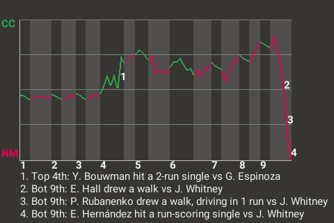2 (9, 1st Inning off B. Ashley, 0 on, 1 out; 5th Inning off B. Ashley, 0 on, 1 out)
