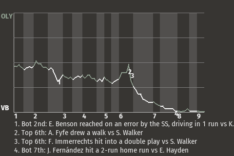 In the bottom of the fourth, Vancouver left fielder Patrick Nichols had a productive at-bat. With the bases loaded and one out, Nichols stroked a 2-run single to center. It made the score 5-0, Vancouver. For the game, he went 1-4, while adding 3 RBI.