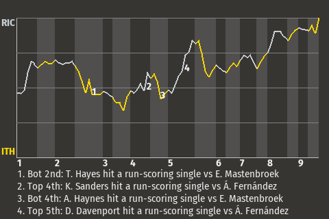 2 (6, 5th Inning off P. Valentín, 1 on, 1 out; 11th Inning off P. Hernández, 1 on, 0 outs)