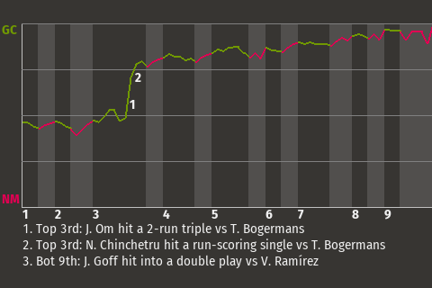 2 (3, 3rd Inning off S. Brennan, 1 on, 1 out; 9th Inning off R. Martin, 1 on, 0 outs)