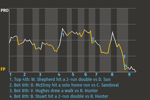 With Gwinnett leading 5-1 in the bottom of the sixth, Hathaway batted against Gulf Coast pitcher Bubba Orr. Hathaway hit a changeup to left-center for a 3-run home run. His 12th home run of the season put the Guinea Pigs on top, 8-1.