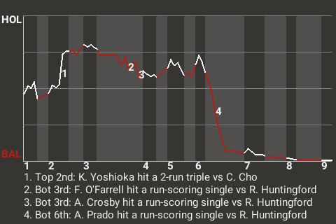b - B. Astbury pinch hit for K. Yoshioka in the 9th