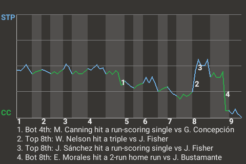 (9, 9th Inning off K. Cannon, 3 on, 1 out)