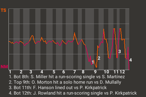 (9, 4th Inning off J. Mugatu, 0 on, 2 outs)