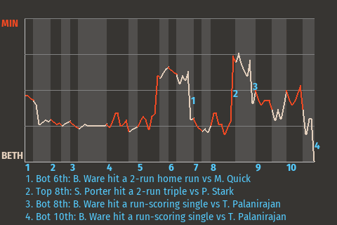 Ian Stanley contributed to the Bethesda win with a 2-run home run in the top of the sixth. For the game, the catcher had 2 hits in 4 at-bats with 1 home run, 1 single, 1 run scored, and 2 runs batted in.