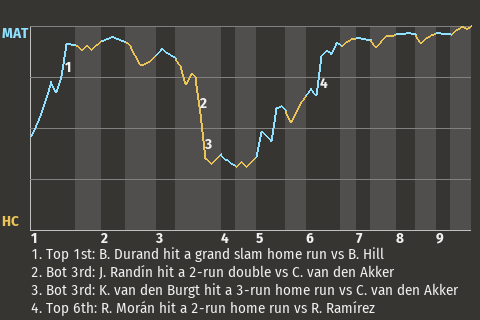 2 (6, 1st Inning off M. González, 0 on, 2 outs; 6th Inning off K. Sassi, 2 on, 2 outs)