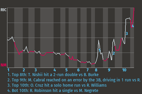 2 (5, 6th Inning off K. Hill, 0 on, 1 out; 8th Inning off L. García, 0 on, 0 outs)
