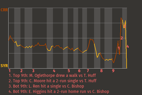 Olympia got a game-changing hit from Luis Cruz. The pinch hitter blasted a 2-run home run in the bottom of the ninth inning to win the game. It was his only hit in 1 at-bat, but it was a winner.
