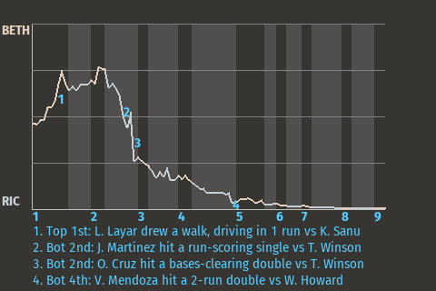 2 (21, 1st Inning off T. Coleman, 2 on, 1 out; 7th Inning off C. Casas, 0 on, 1 out)