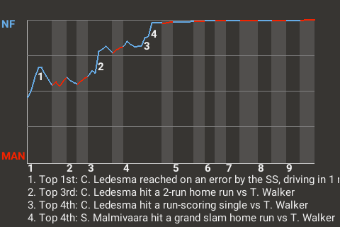 The decisive blow was delivered by Justin Cox in the bottom of the ninth when he hit a 2-run home run off 22-year old left-handed pitcher Harry Cherry to win the game for Mancelona. The home crowd went nuts.