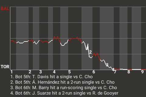 Toronto used a superb performance from starting pitcher Tai sun Rang to down the Baltimore Bullets, 7-0. The winner was Rang. He threw 5.1 innings of shutout ball. The loser was Cheol-han Cho. The win puts Toronto at 54-50 this season.