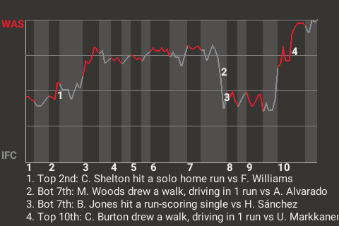 2 (4, 5th Inning off J. Hark, 0 on, 0 outs; 8th Inning off T. Scott, 0 on, 0 outs)