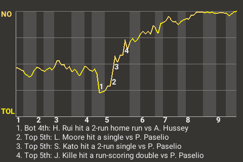 2 (19, 2nd Inning off A. Hussey, 0 on, 2 outs; 9th Inning off I. Theunen, 0 on, 0 outs)