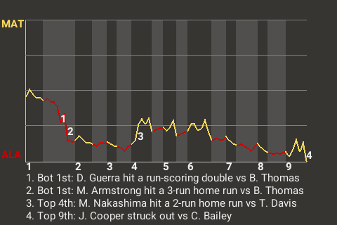 2 (6, 2nd Inning off B. Wayland, 0 on, 1 out; 9th Inning off P. Gallegos, 3 on, 0 outs)