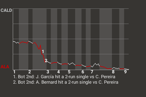 In the bottom of the second, John García delivered a clutch hit. With two gone and the bases loaded, the Alameda first baseman hit a 2-run single, putting the Airmen in front, 6-2.