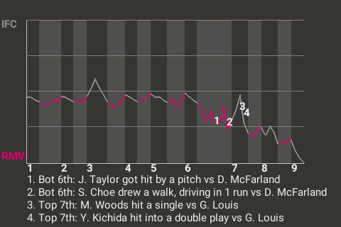 Rocky Mountain left-hander George Louis helped his team edge Idaho Falls by the score of 1-0. Louis kept the opposing lineup in check. Seung Pak earned the save, his 18th, for the Vibes. The Vibes raised their record to 32-22.