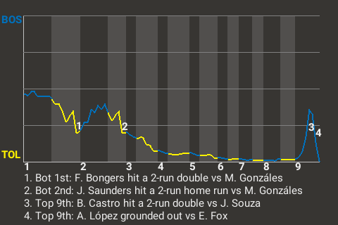 2 (9, 2nd Inning off M. Gonzáles, 0 on, 0 outs; 5th Inning off K. Brown, 1 on, 2 outs)