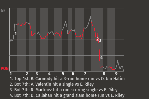 2 (5, 2nd Inning off Y. Gui, 2 on, 0 outs; 4th Inning off J. Velázquez, 1 on, 2 outs)