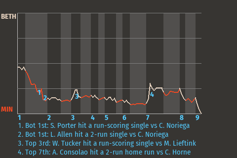 2 (6, 4th Inning off J. Preston, 0 on, 0 outs; 8th Inning off J. Preston, 0 on, 0 outs)