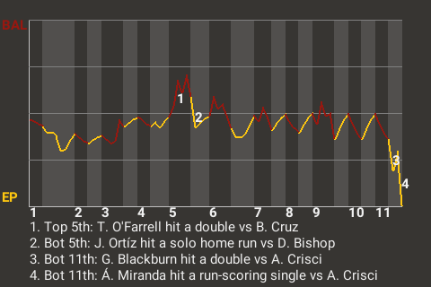 (1, 11th Inning off A. Crisci, 0 on, 0 outs)