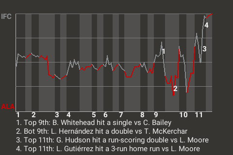 Laredo used the hitting of Fernando Salinas to pick up the win. The shortstop clubbed a 2-run home run in the top of the sixth inning to put the Hawks on top, 4-3. For the game, Salinas had 1 home run and 1 single in 5 at-bats.