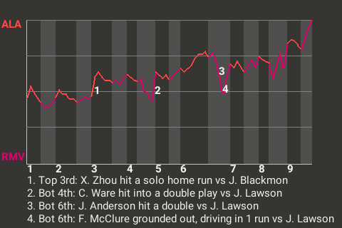2 (6, 5th Inning off B. Jackson, 0 on, 1 out; 7th Inning off M. Downs, 1 on, 0 outs)