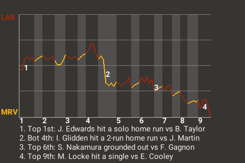2 (9, 7th Inning off R. Small, 0 on, 0 outs; 8th Inning off H. Kaisin, 1 on, 1 out)