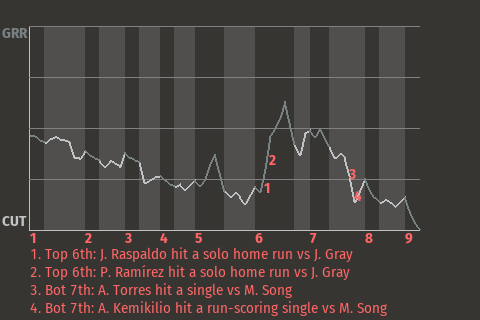 The Vibes had been locked in a 2-2 tie with the Chukars going into the bottom of the fourth inning. That changed quickly when the 23-year old right fielder Yoshino Kichida came to the plate. Kichida hit a 2-run home run on a 2-1 fastball from Rocky Mountain hurler Wyatt Williams. It was Kichida's 6th home run of the year.