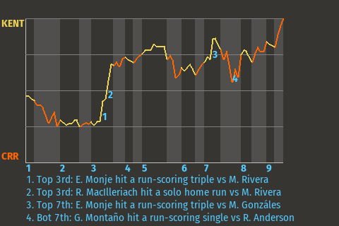 Brian Ellison came through with a big-time hit for Washington. The center fielder smacked a 3-run home run in the top of the eighth inning to give his team the lead, 4-3. It was his only hit, but it was clutch.