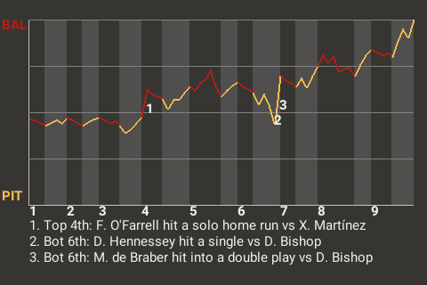 Bishop picked up the win. He's now 1-0, after putting the Pittsburgh offense in the deep freeze. Over 7.1 innings, he allowed no earned runs on 3 hits.